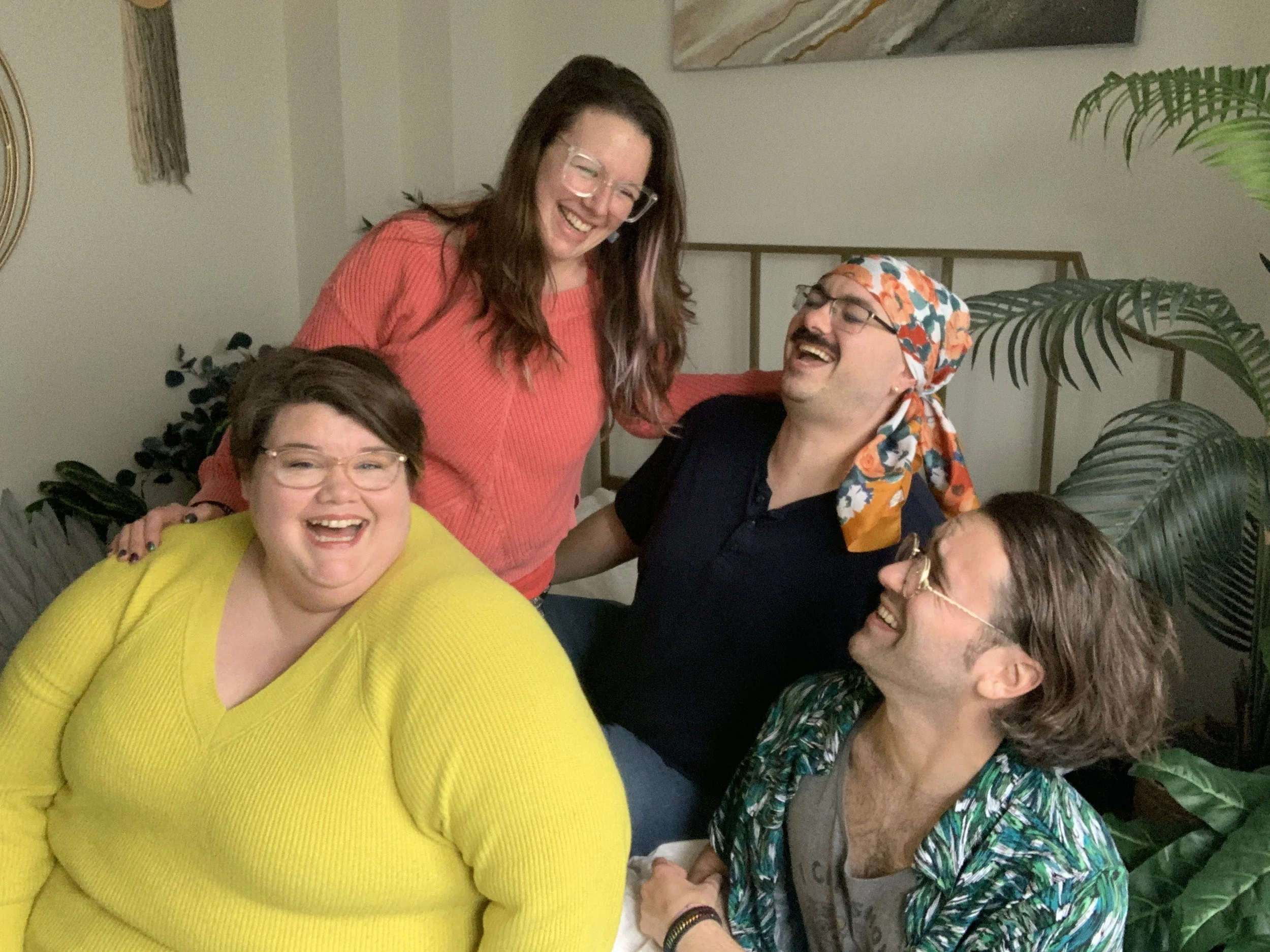 Before we go any further, let me introduce myself! I’m Kinzie (up top, in the coral sweater!). I’m the founder of the Empowerment Studio, a boudoir photography studio in Kansas City, MO, where I guide my clients to see their bodies in revolutionary and deeply kind ways. I cannot do this alone, though. We've got a small but mighty Empowerment Team (Libby! David! Donnie!) that I adore with my whole heart.
